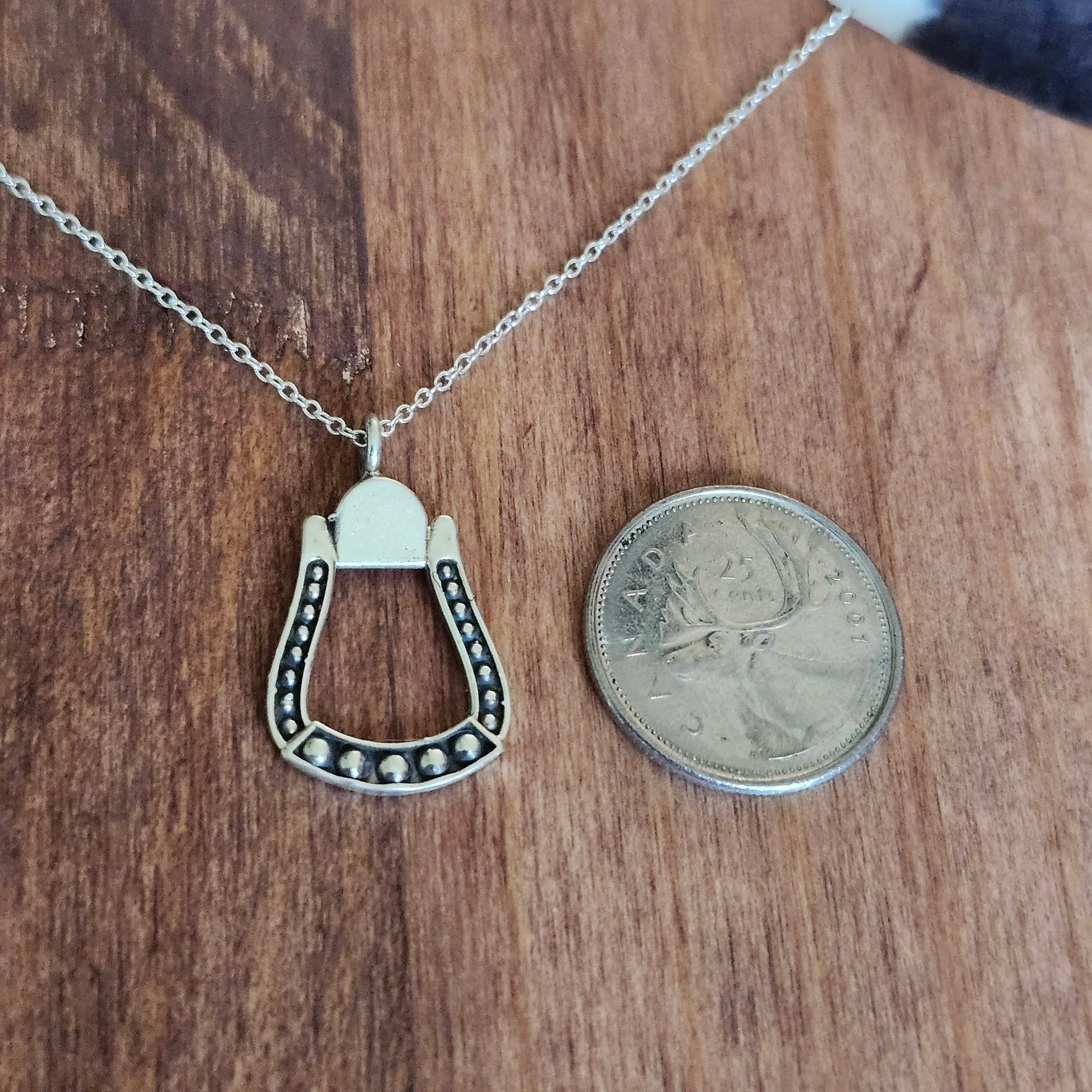 925 sterling silver western stirrup pendant on a sterling silver chain