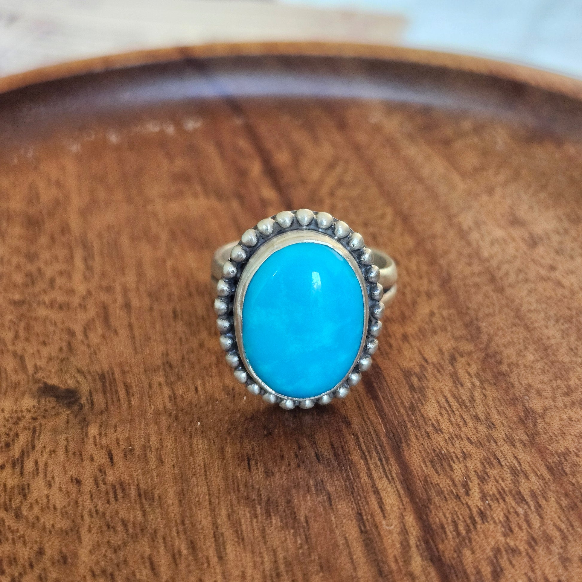 Bague en argent sterling 925 fait à la main ornée d'une pierre de turquoise. La bague est hautement ajustable.