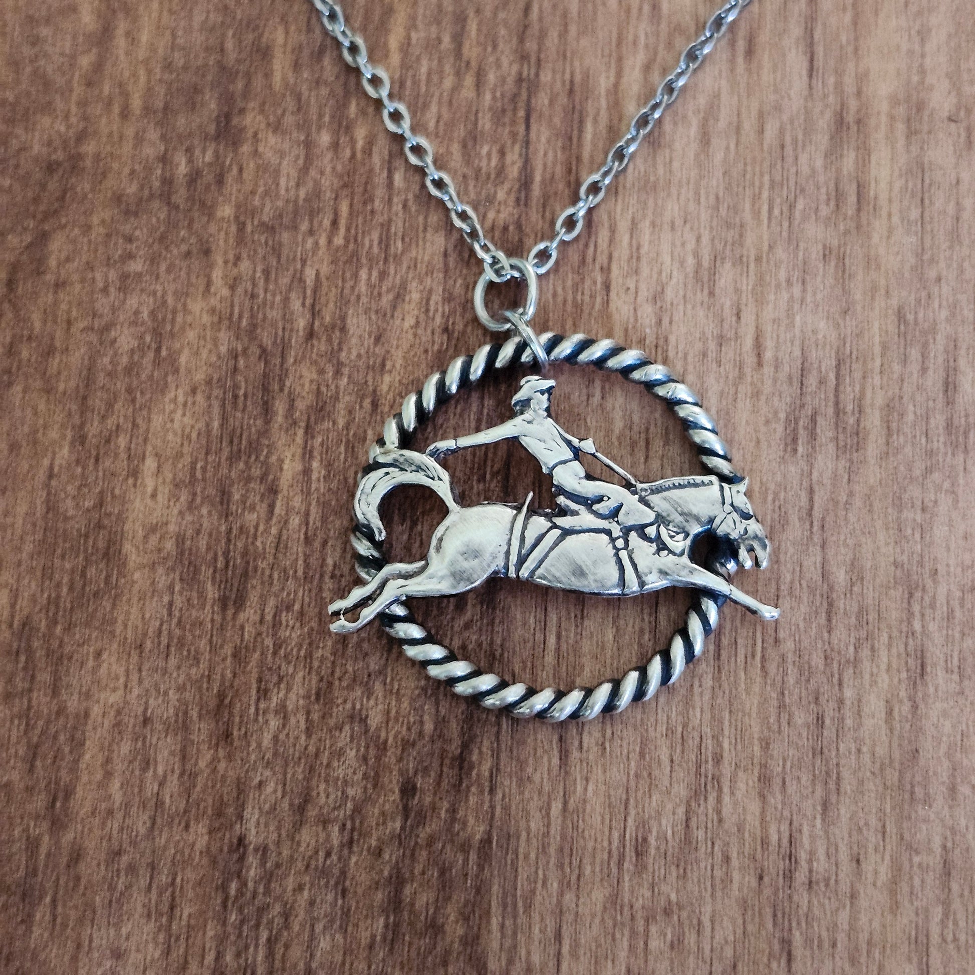 Pendentif en argent sterling 925 et d'une ornement d'un cowboy sur un cheval qui ''buck''.