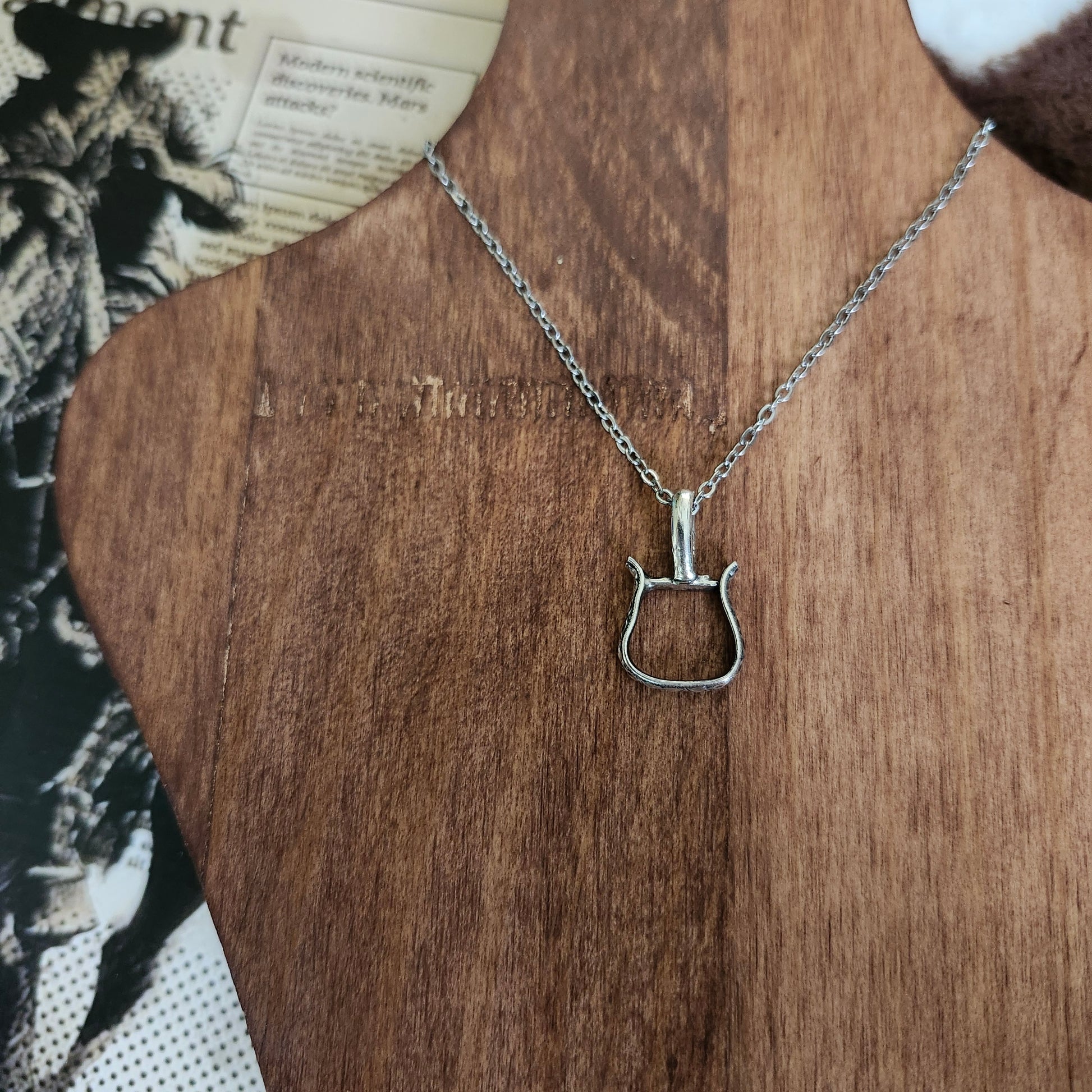 Pendentif en argent sterling 925 en forme d'étrier western fait à la main au Québec.