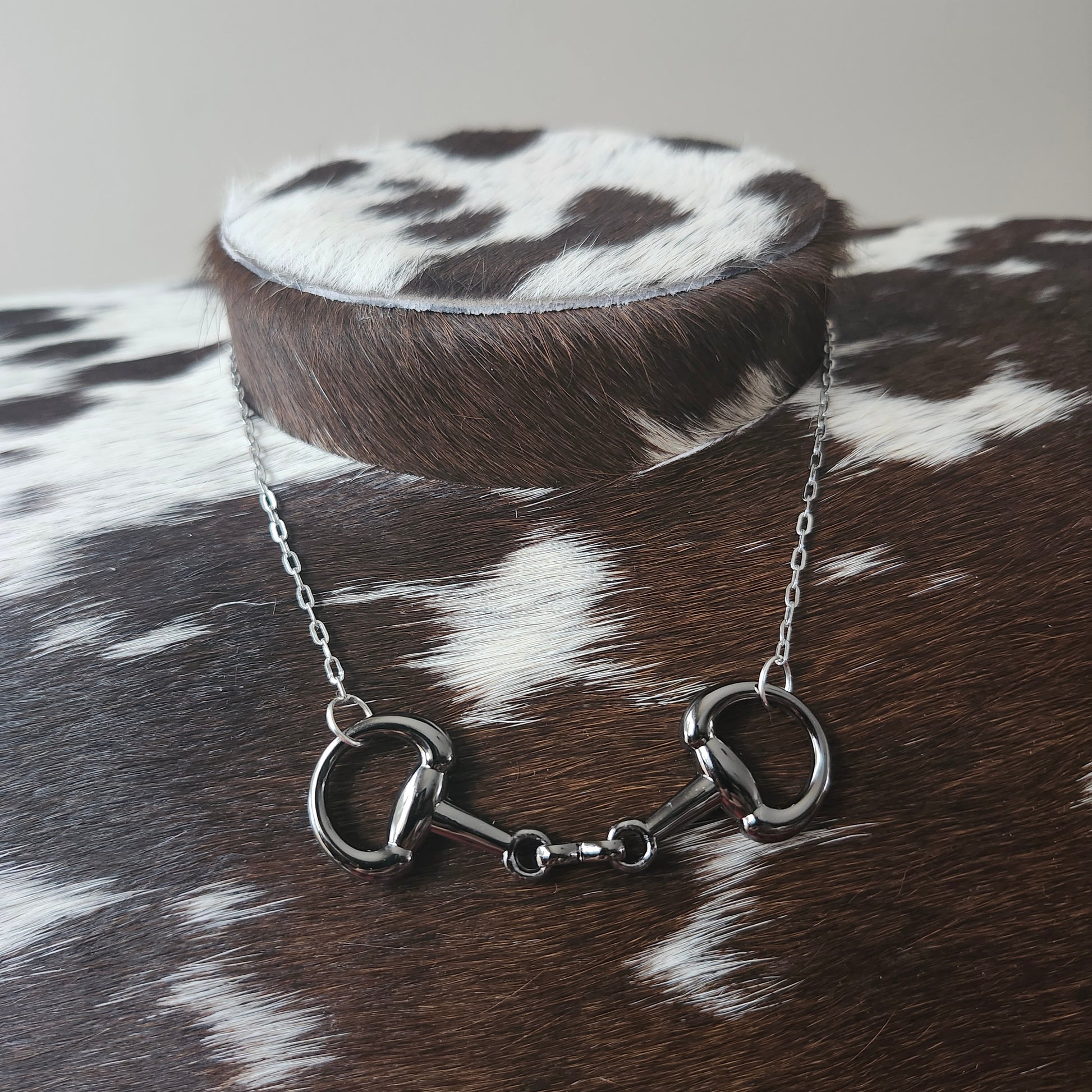 Ce collier au pendentif en forme de mors à anneaux en D à double brisure est le parfait bijou pour toute passionnée de chevaux. Adoptez un style élégant et unique en le portant.