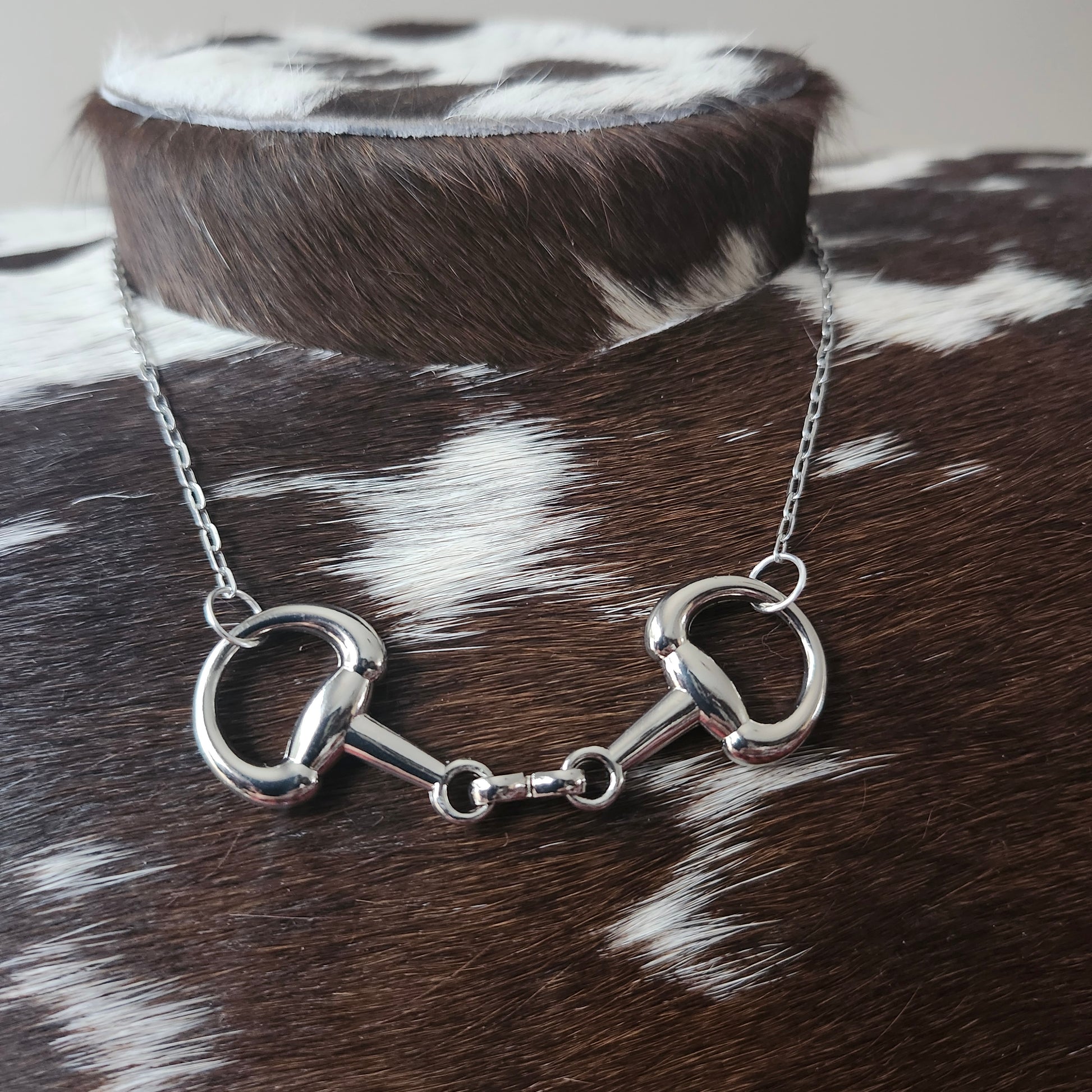 Ce collier au pendentif en forme de mors à anneaux en D à double brisure est le parfait bijou pour toute passionnée de chevaux. Adoptez un style élégant et unique en le portant.