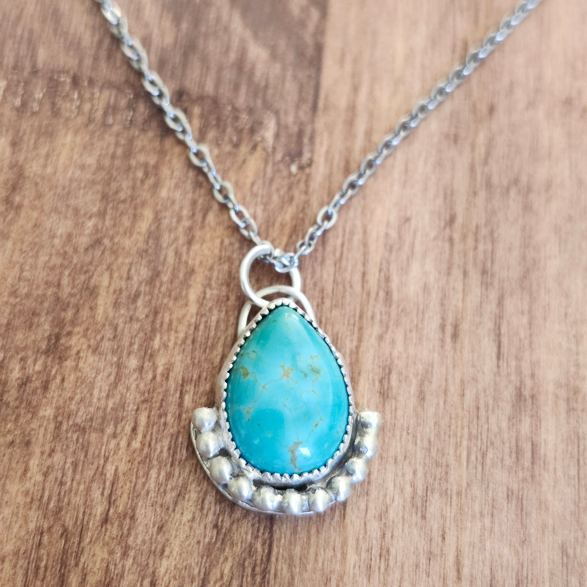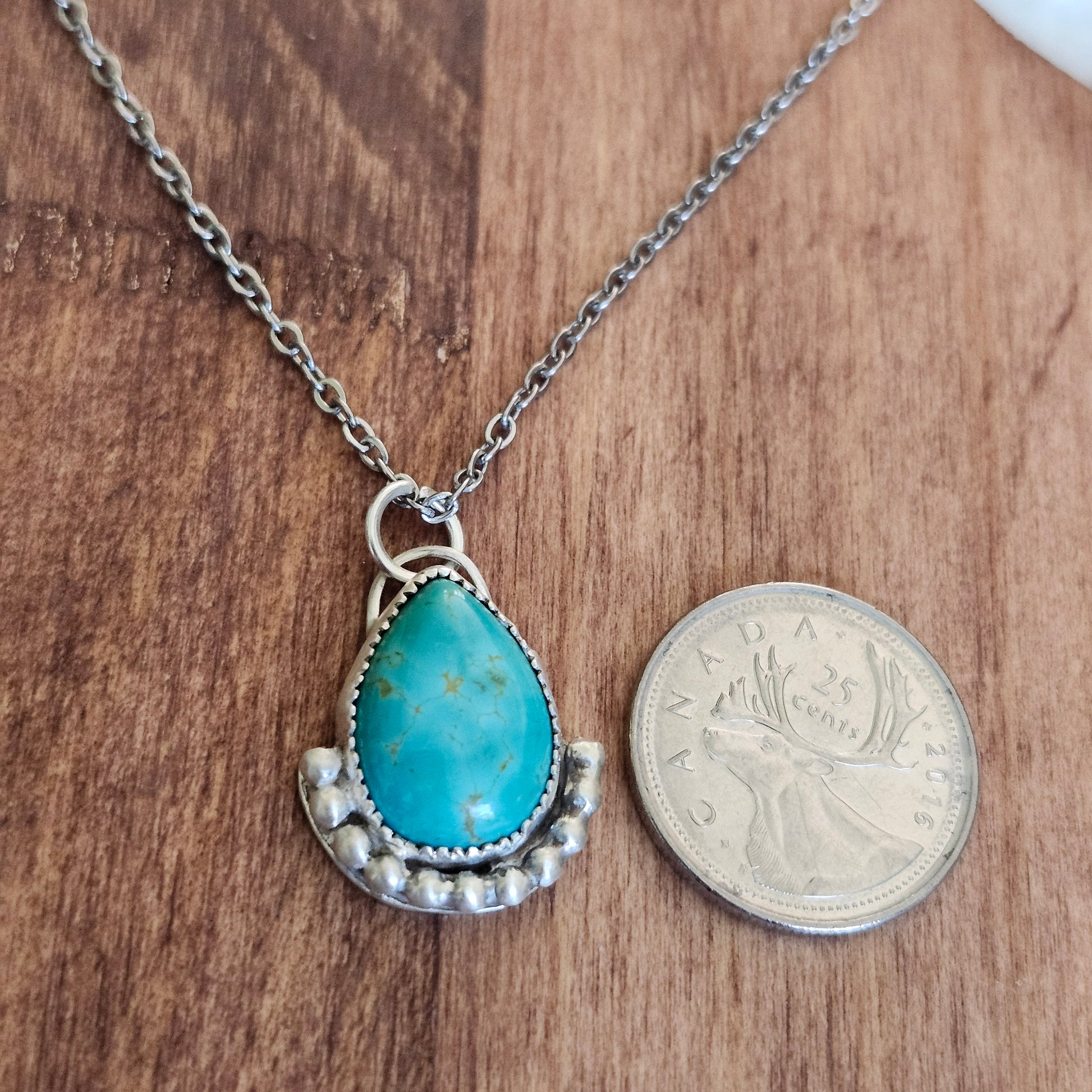 Pendentif en argent sterling 925 orné d'une pierre de turquoise de la mine Kingman en Arizona fait à la main au Québec.
